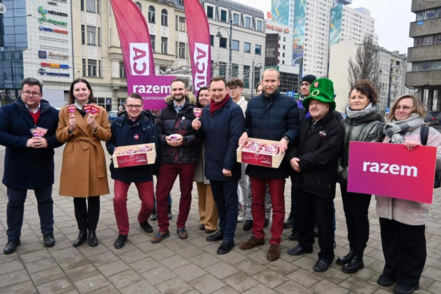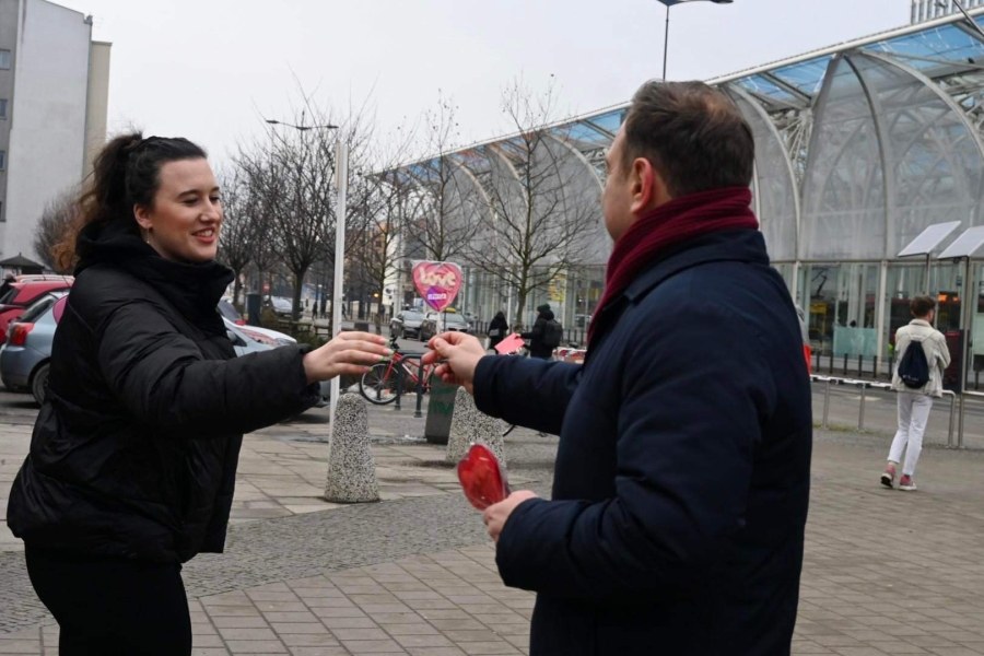 "Dzisiaj fajne, radosne święto - Walentynki. Ludzie się kochają, mamy nadzieję, że kochają się każdego dnia, ale dzisiaj w sposób szczególny jest emanacja tej miłości i dzisiaj Lewica, Nowa Lewica, Partia Razem też umilają łodzianom życie. Rozdajemy lizaki, rozdajemy krówki, ale przy okazji Walentynek chcemy też powiedzieć o jednym, bardzo ważnym problemie, z którym borykają się głównie młodzi obywatele naszego kraju. To jest brak dostępności własnego mieszkania. To jest ta zmora, która trapi Polskę od kilkudziesięciu lat, z którą żaden rząd nie był w stanie sobie poradzić. Młodzi ludzie często mieszkają z rodzicami, brakuje w Polsce dwóch milionów mieszkań. Wynajem mieszkania to dobro luksusowe, a wzięcie kredytu, w tych czasach, to zarobki na poziomie 10-15 tys. zł, żeby w ogóle myśleć o jakimkolwiek kredycie na jakiekolwiek mieszkanie. My jako Lewica zawsze uważaliśmy, że mieszkanie jest prawem, a nie towarem i mówimy to bardzo wyraźnie i bardzo jednoznacznie" - podkreślał poseł Tomasz Trela.