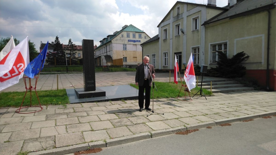 Po odśpiewaniu hymnu głos zabrał szef SLD w województwie łódzkim Tomasz Trela, który mówił, jak istotna jest walka o prawa pracownicze, przypomniał postulaty SLD w kwestiach pracowniczych, a wśród nich m.in. podwyższenie kwoty wolnej od podatku czy zrównanie najniższej emerytury i renty z płacą minimalną. Zwrócił także uwagę na protestujące w Sejmie matki i opiekunów osób z niepełnosprawnościami i ich walkę o godne życie. Przypomniał też, że to właśnie rząd SLD-UP 14 lat temu wprowadzał Polskę do Unii Europejskiej.